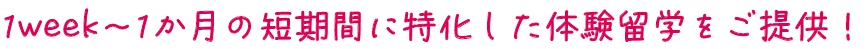 最短1week~1か月のプレ・プレスクール体験留学は、留学をより身近に感じていただけるプログラムです。お子さまのプレスクールでの留学体験に加え、プレスクール見学ツアーや物件探しのお手伝いなど、保護者の方に向けたアクティビティもご用意しています。